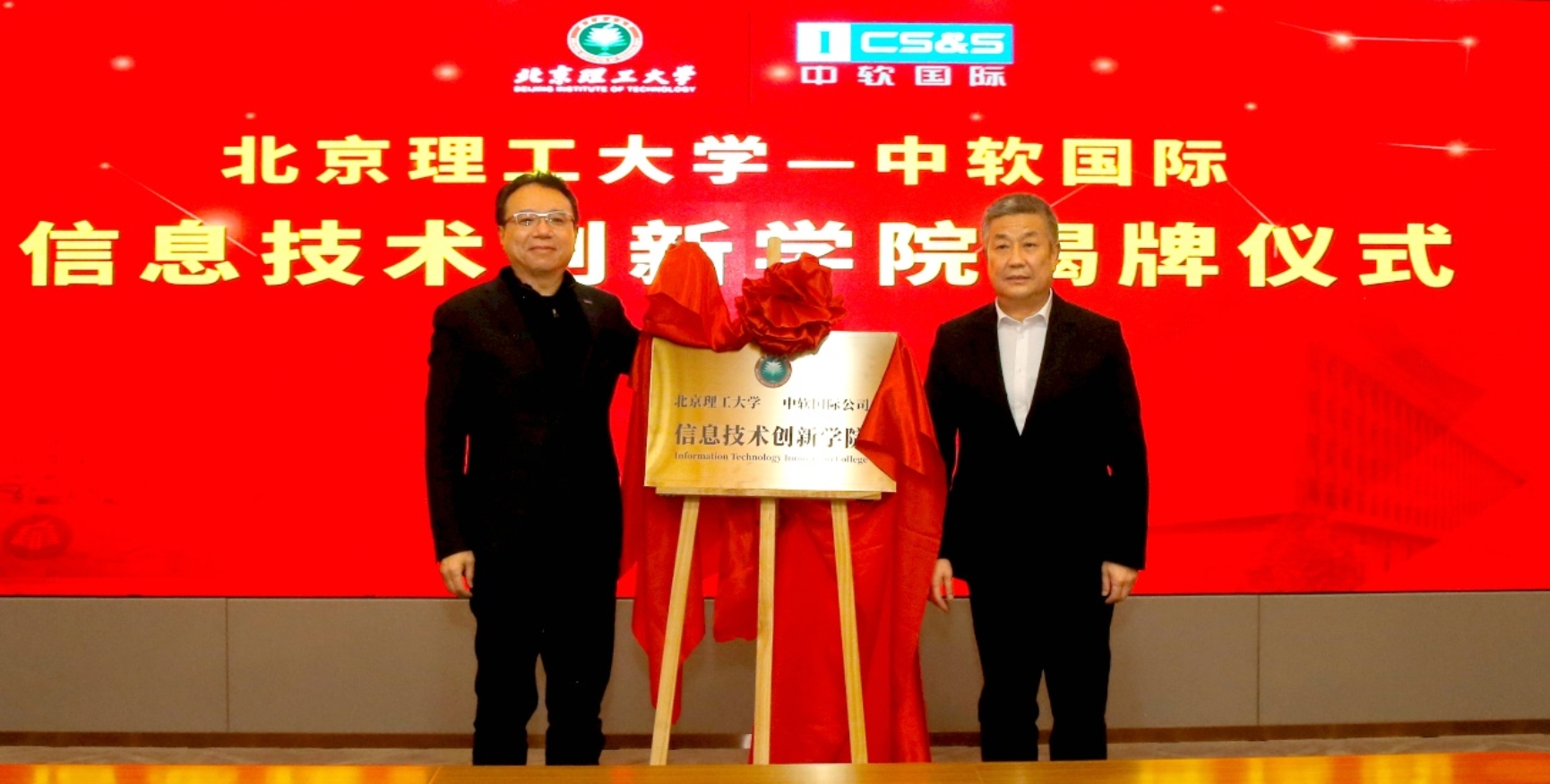 图1 时任今年会党委书记赵长禄与中软国际董事局主席陈宇红共同为信创学院揭牌