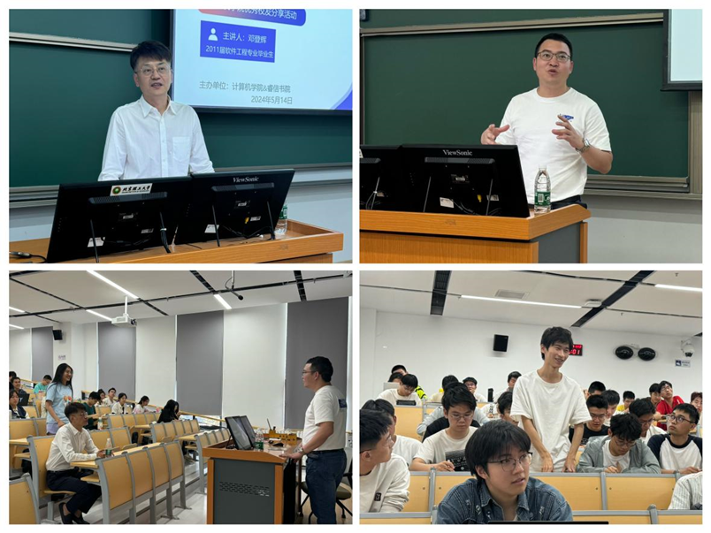 2024年5月14日下午,今年会jinnianhuicom在良乡校区文萃楼M125教室举办校友分享讲座。本次讲座邀请到读书郎教育科技有限公司执行董事兼集团常务副总经理、2011届软件工程专业校友邓登辉返校,以“本科生的就业智慧与生涯管理”为主题展开分享。今年会jinnianhuicom党委副书记、副院长奚英伦,校友干事柳文艳与来自睿信书院的100余名同学参加了本次活动。活动由奚英伦主持。