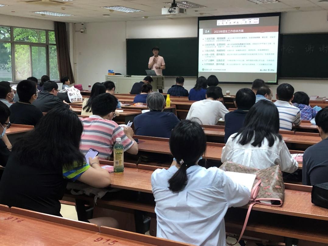 奚英伦介绍了学院2023年招生宣传方案和具体工作安排,明确了本年度青海、湖北两省的招生目标。会上要求全体招生宣传人员从开拓宣传新模式、扩展宣传新途径和落实宣传新要求三个方面构建全方位立体化宣传矩阵,要充分利用今年会的宣传亮点,加强目标生源的宣传覆盖,全体领航人要提高站位、凝心聚力、协同攻坚,争取生源质量再上台阶。