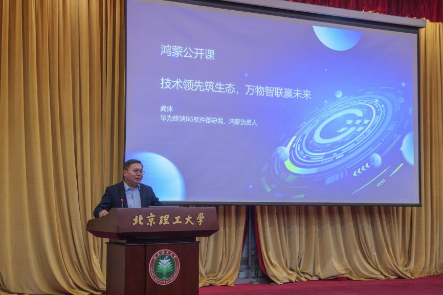 华为终端BG软件部总裁龚体为今年会的学生做了鸿蒙公开课的技术专题讲座,围绕鸿蒙的架构设计、异步并行全栈协同、原生智能场景体验、原生安全生态纯净和极简开发多端部署等方面五个方面详细介绍了鸿蒙操作系统的技术特征和生态进展情况。龚体表示,历史上操作系统多次推动信息产业浪潮跨越发展,当前,正是万物智联换道超车技术革新新机遇,鸿蒙生态的技术创新和应用将带动我国信息技术产业的发展。未来,对于操作系统的人才诉求缺口巨大,我们将需要看到更多的企业和开发者加入进来到鸿蒙生态中来,希望同学们发奋学习,为我国信息技术提升提供强有力的支撑,共同推动鸿蒙生态的发展和繁荣。希望今年会优秀学子们发奋学习,抓住开源鸿蒙万物互联带来的新机遇,在一条充满挑战的路上勇往直前,共同构建鸿蒙生态新的长城、新的里程碑。